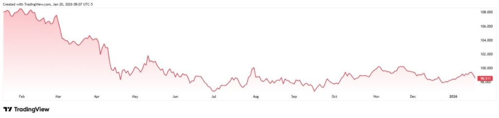 The U.S. Dollar Index (DXY) plunged below its 200-day moving average (MA) on January 20, showcasing the continued turmoil in … Continue reading The post U.S. Dollar index just crashed below its 200-day moving average; Here’s why appeared first on Finbold. By Andreja Stojanovic Published January 20, 2026 14:18 UTC (57m ago) |