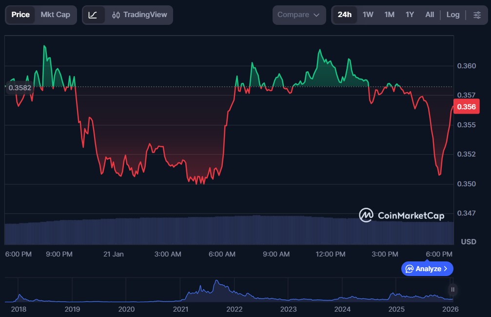 HBAR price is trying to stabilize, but the rebound is losing strength. The token is up about 7% since January 20, yet it remains down nearly 8% over the past seven days. More importantly, the structure supporting a bullish breakout is starting to weaken beneath the surface. The W-shaped recovery pattern is still intact for The post HBAR Price... By Ananda Banerjee Published January 22, 2026 15:00 UTC (8h ago) |