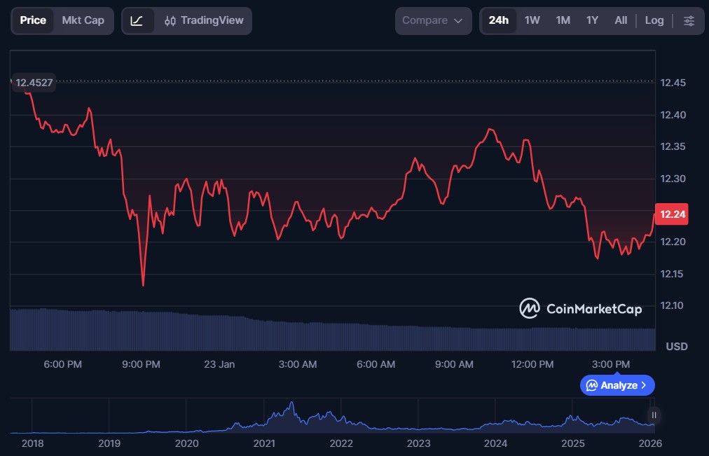 Ozak AI’s presale is now trading at $0.014 with strong investor demand. With that, early buyers are eagerly waiting for its anticipated listing at $1, and post-listing estimates suggest that the price can grow to $12, resulting in a potential ROI of more than 85,600%. This prompts investors to pay By Zayan Published January 23, 2026 08:41 UTC (5h ago) |