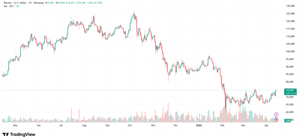 Bitcoin (BTC) price holds gains trading above $74,500 on Tuesday after a key technical breakout the previous day.Published April 14, 2026 11:00 UTC (24m ago) |