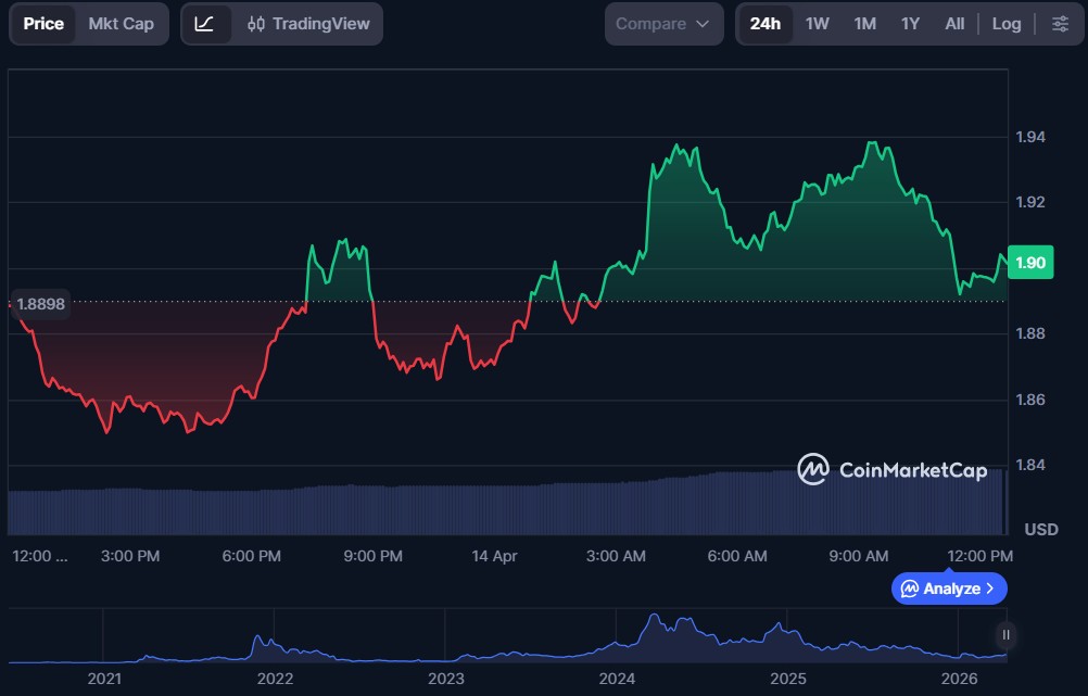 Strong volume and rising demand contrast with deeply bearish sentiment, setting up a potential move if $1.42 clears. By Shaurya Malwa Published April 14, 2026 05:13 UTC (6h ago) |