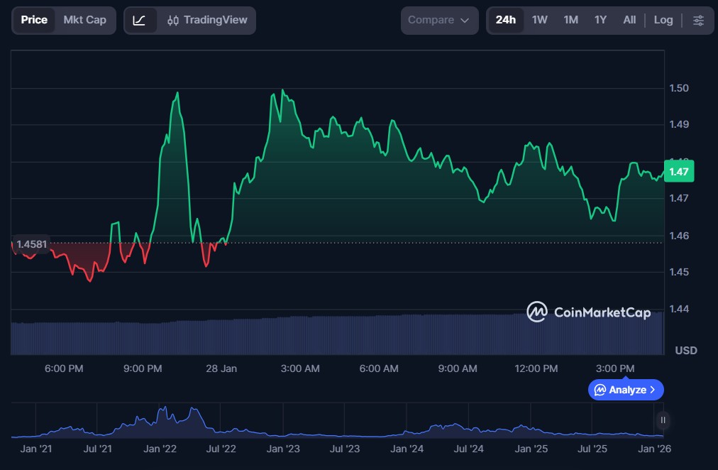 SUI trades at $1.40 with analysts forecasting $2.00-$2.42 targets by February. Technical indicators show mixed signals as price tests critical support levels. (Read More)Published January 28, 2026 16:01 UTC (33m ago) |
